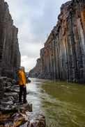 Następnie udamy się do Stuðlagil Canyon, jednego z najbardziej spektakularnych i stosunkowo niedawno odkrytych cudów natury Islandii. To, co sprawia, że Stuðlagil jest tak wyjątkowy, to jego gigantyczne, heksagonalne kolumny bazaltowe, które majestatycznie wznoszą się po obu stronach kanionu. W połączeniu z niesamowitym, turkusowym kolorem wody rzeki Jokla, która płynie przez kanion, tworzy to widok jak z innej planety.
